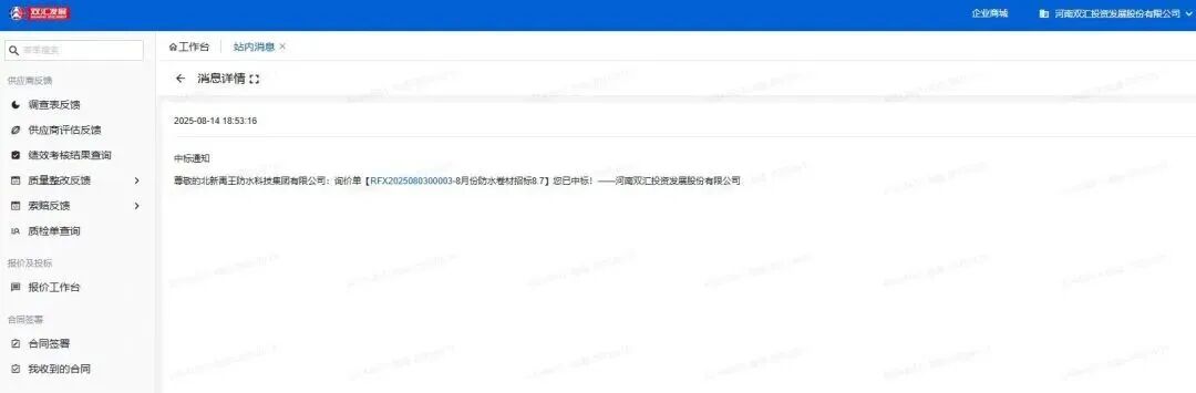 近日,北新防水凭借卓越的产品性能、全周期防水系统解决方案及高效响应的服务体系,成功中标河南双汇投资发展股份有限公司(下称“双汇发展”)防水材料招标项目。此次中标食品行业巨头双汇发展,是北新防水在复杂工业环境中的系统化服务能力与品质保障优势体现,也是对其在食品生产场景下的专业防水防护能力的再次认可。
